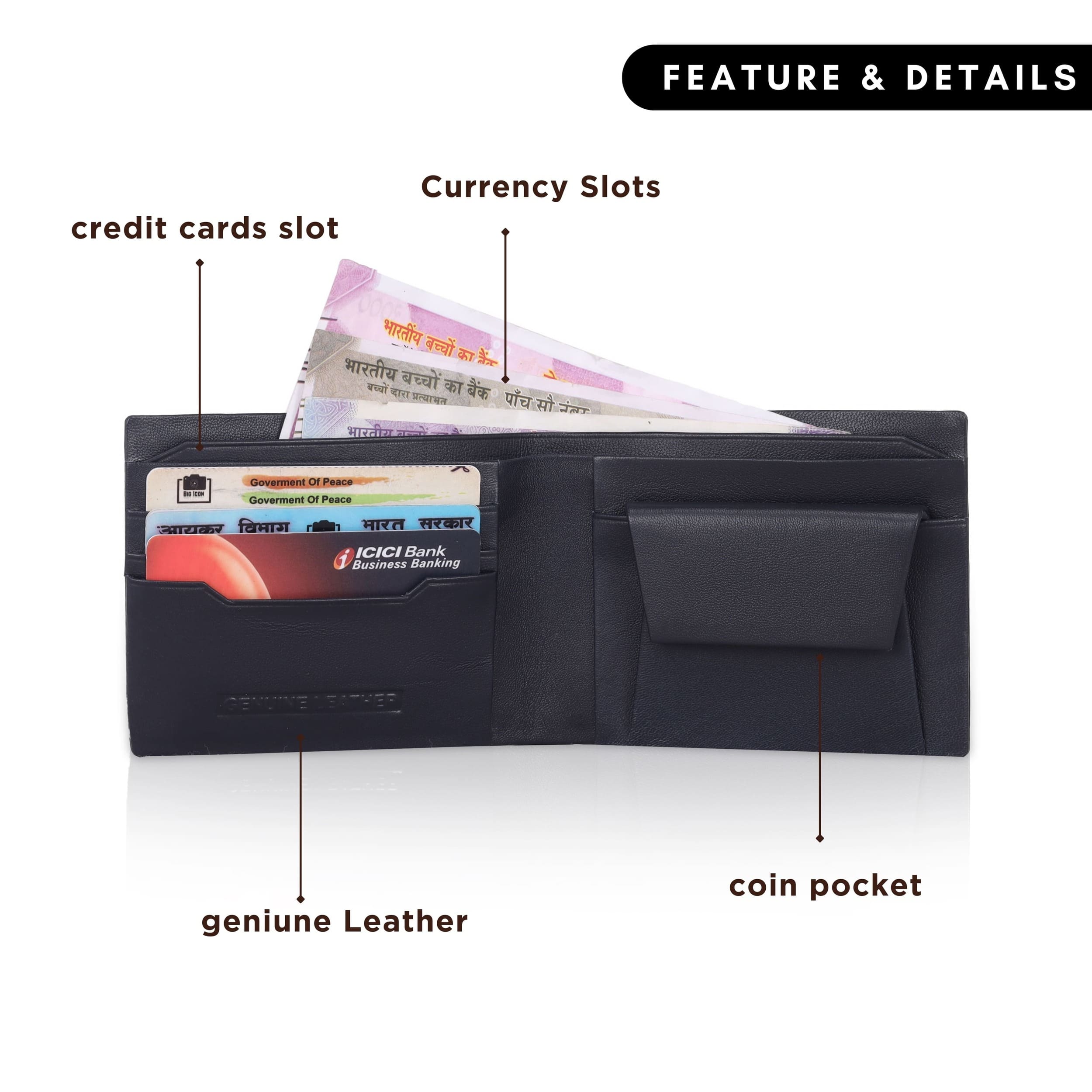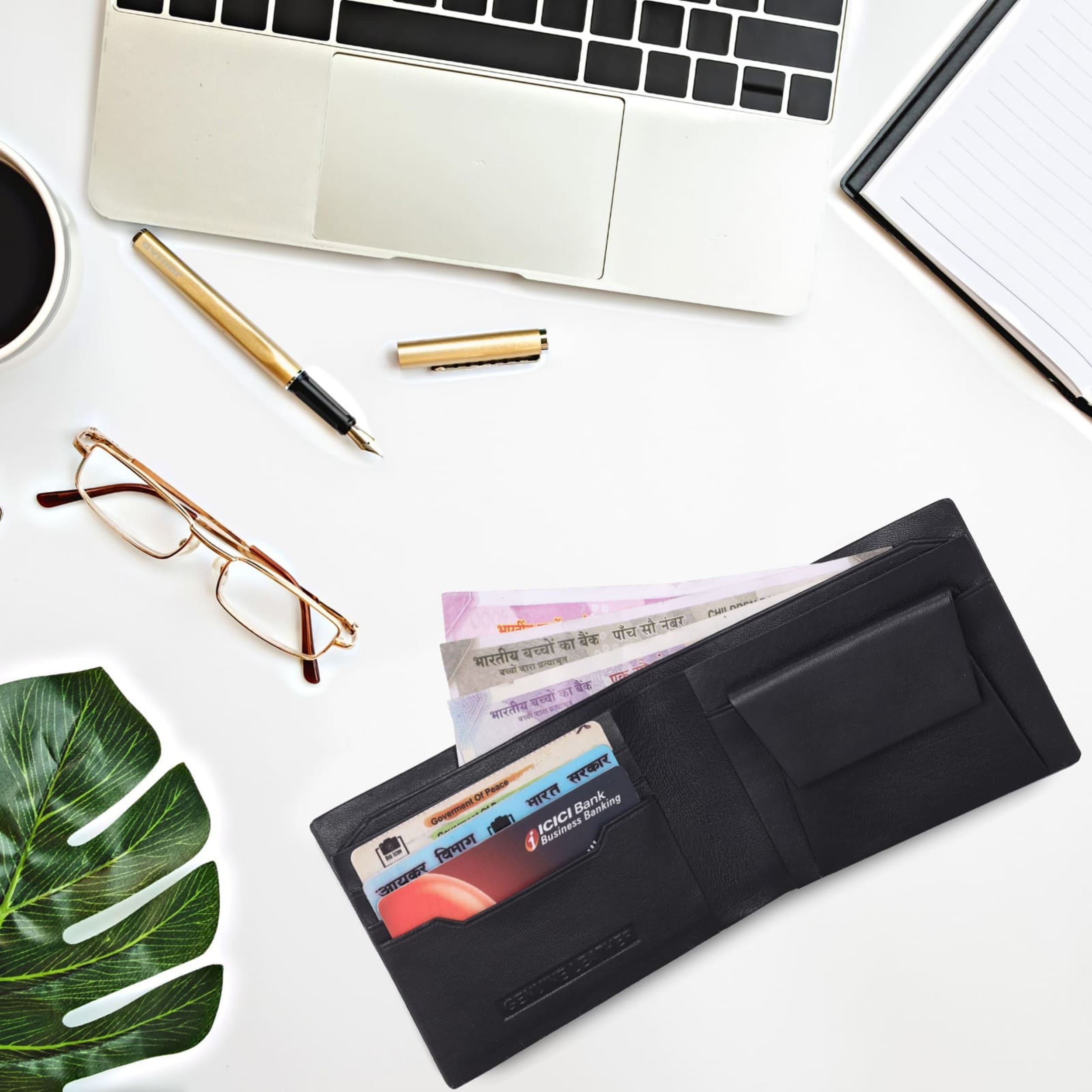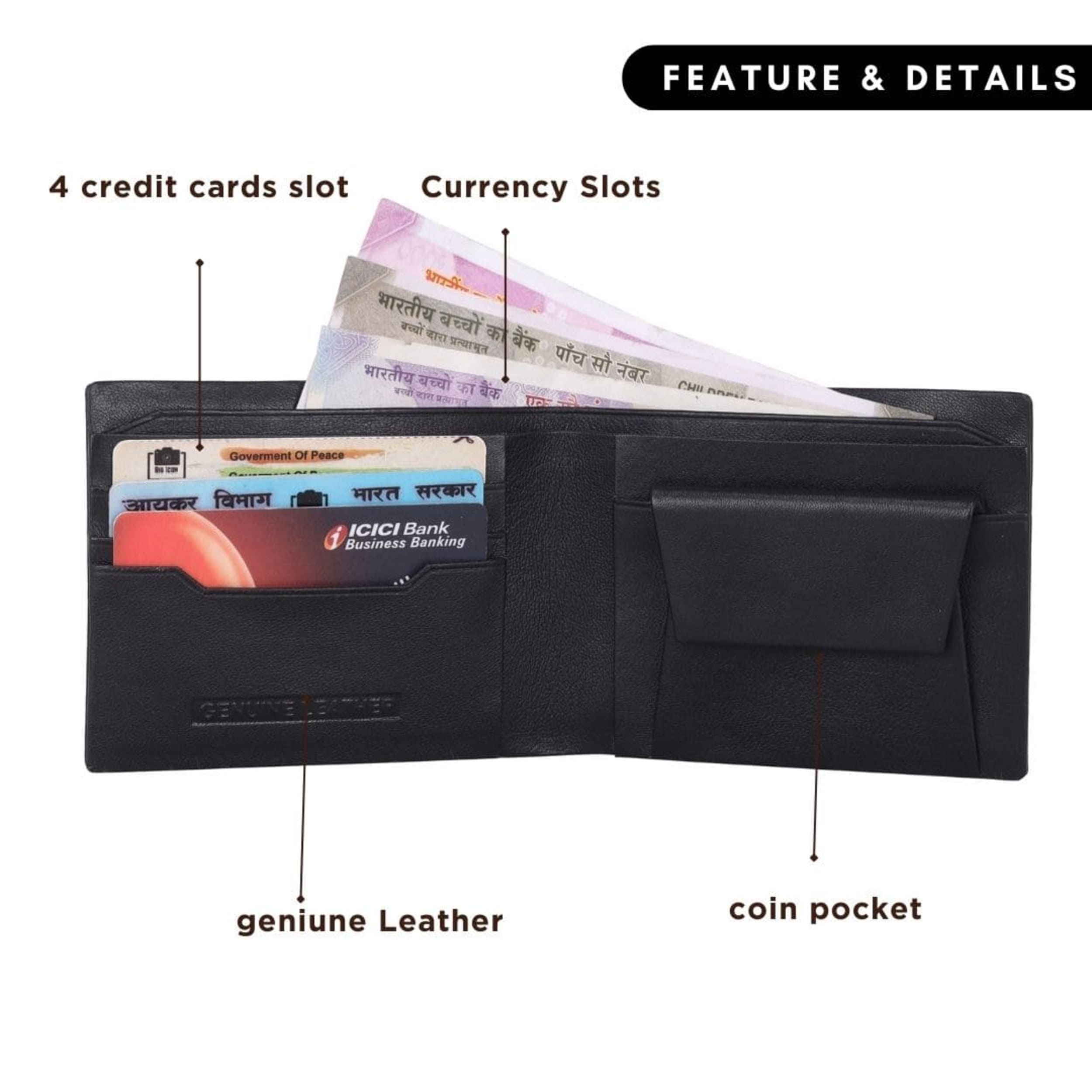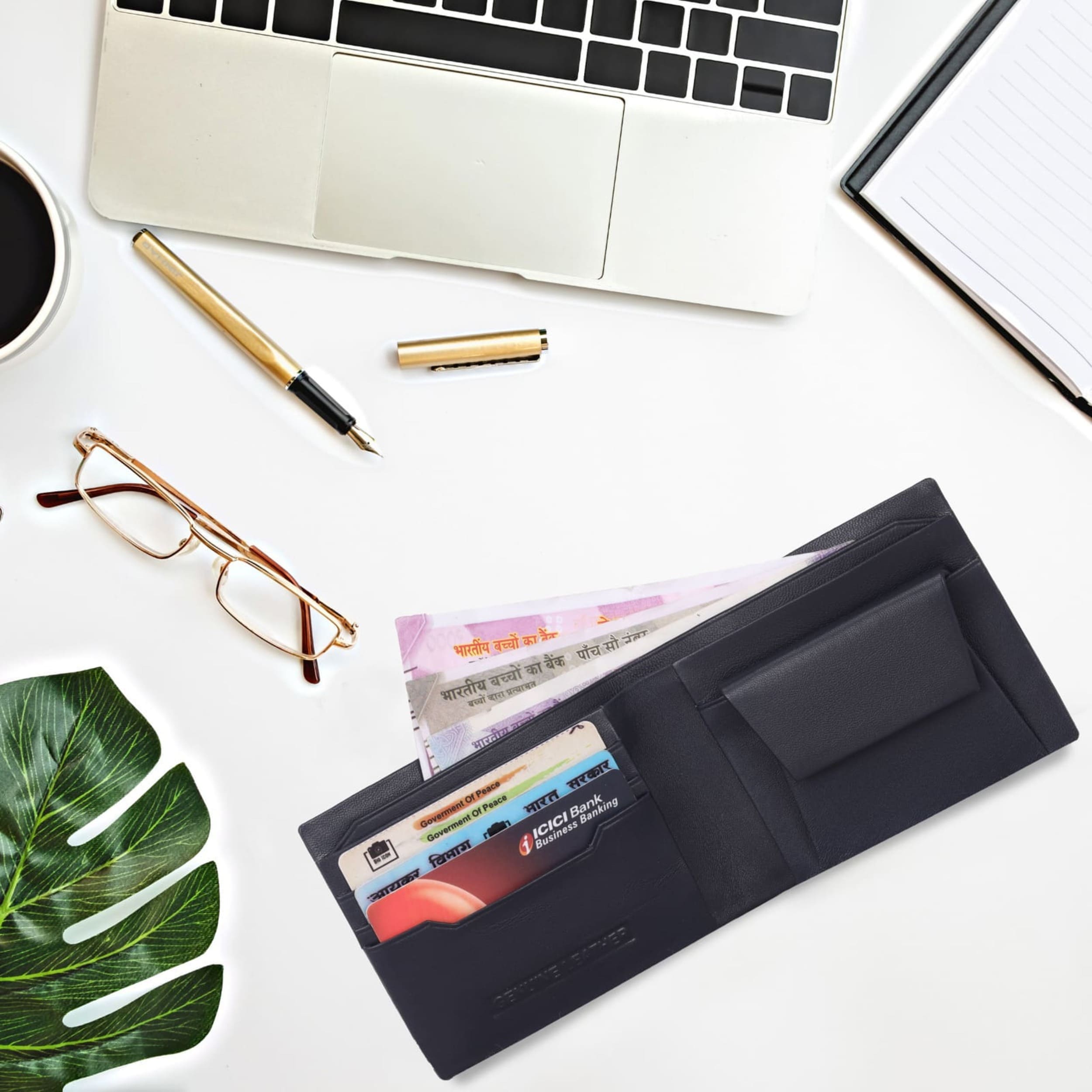 Premium leather hand made wallets with three card slots, coin pocket and currency pocket.